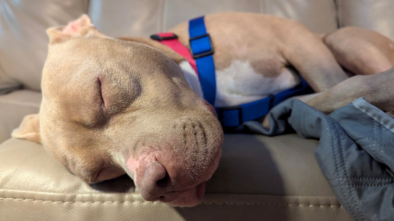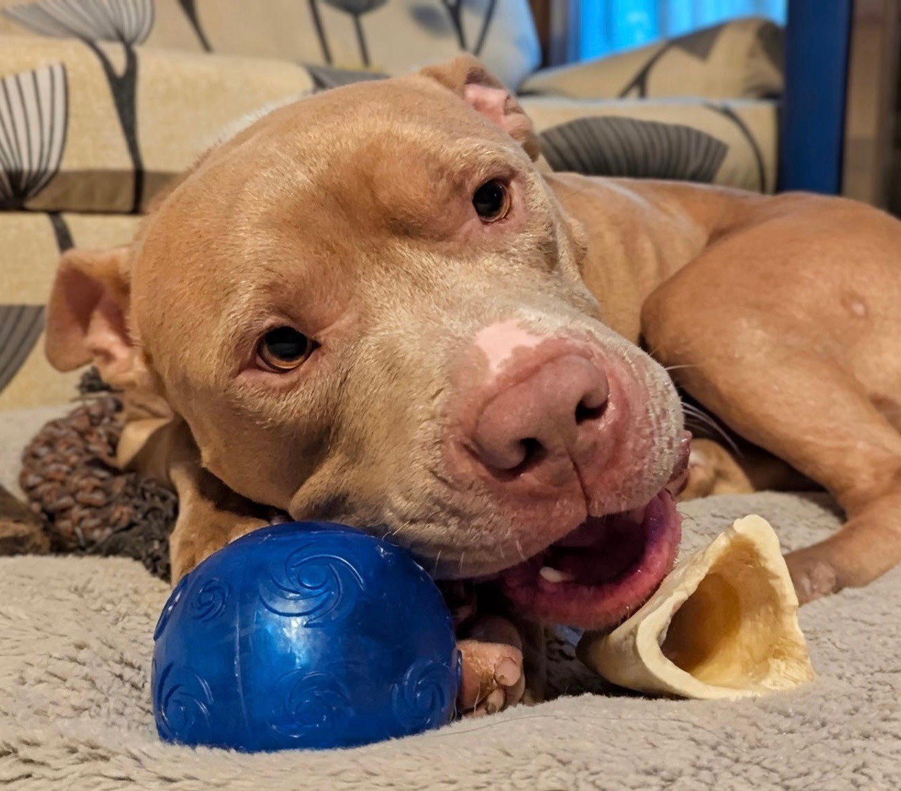 Denny needs pet parents who can understand he's had a rough start, and can provide a safe environment--and plenty of exercise--to help his nervous system continue to heal. He would do best as the only dog in the home, as he tends to get over-excited with other dogs. He has not been tested around children but would probably do well with older kids (just based on his size and strength). Trazodone has been extremely effective for his anxiety. He THRIVES when surrounded by friendly humans in a calm space. Denny's foster lives in an apartment, and he's doing well overall, but she believes a backyard and more space to move would only help him be more balanced.